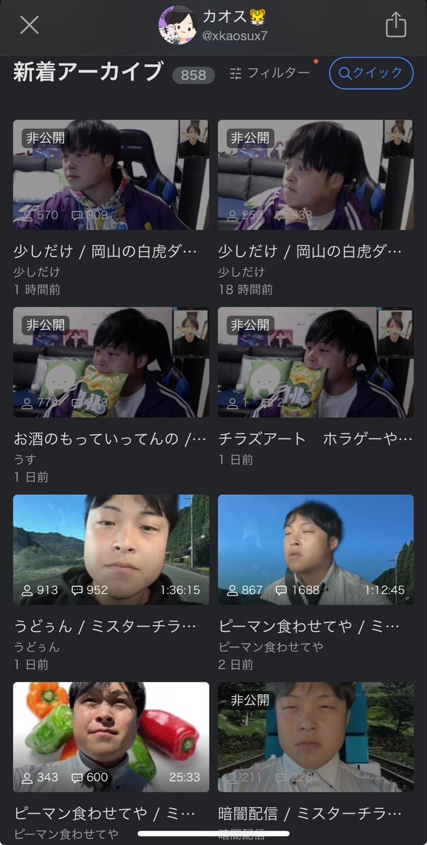 今日のサムネもだけど 非公開になってるサムネのがビジュ可愛すぎて見返したいなーなんて思っちゃうw 全部公開して欲しいくらいだよ(夜の酒雑はほぼ非公開なのはわかってるけどね☺️) そしていつになったらものもらい治るんだろ? あと風邪悪化しませんように!お大事にね! @xkaosux7 #カオス pic.x.com/vLKHvzLedx