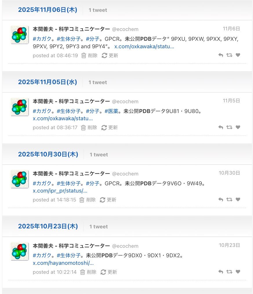 #カガク#生体分子#分子。GPCR。未公開PDBデータ“ 9PXU, 9PXW, 9PXX, 9PXY, 9PXV, 9PY2, 9PY3 and 9PY4”。 x.com/oxkawaka/statu…