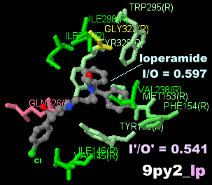 #カガク#生体分子。久々のGPCR。LigPlot+による“鍵と鍵穴”。グラデーション。11/12公開のPDBデータ348件の中から9PY2(他に9PXU・9PXW・9PXX・9PXY・9PXV・9PY3・9PY4公開)のR鎖とPDBsumデータ,ロペラミド(loperamide)が結合したμオピオイド受容体。緑優勢。Jmol GPCR ecosci.jp/GPCR/ pic.x.com/yZNAeQtZyW