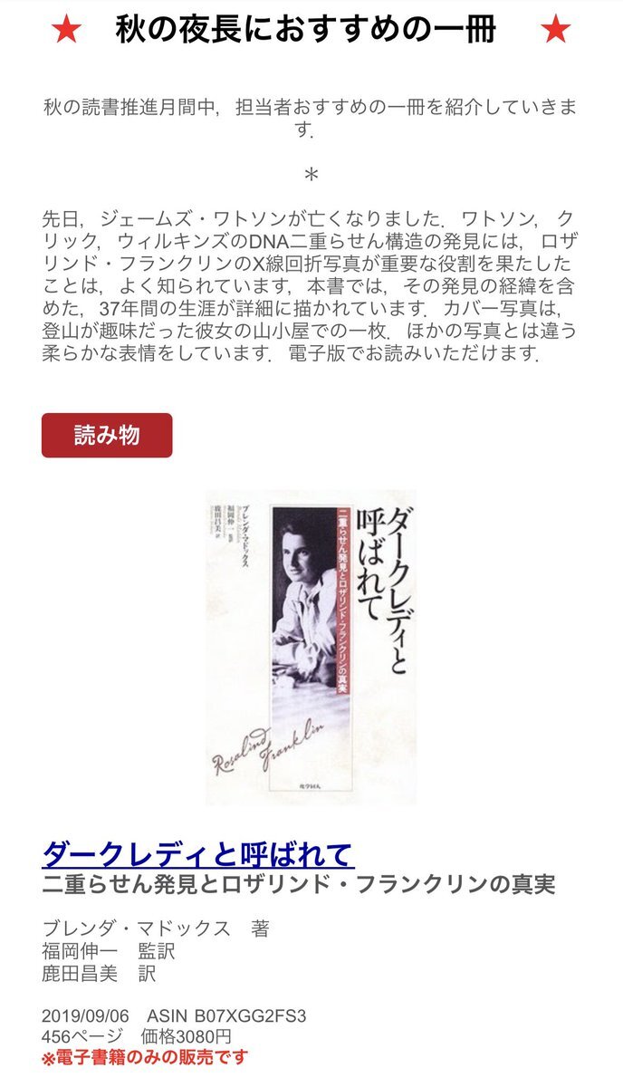 #カガク#生体分子。DNA。ワトソンとクリックのワトソンが亡くなられました。二重らせん構造の話では必ず出てくるロザリンド・フランクリン。 pic.x.com/EJb1cMFSgp