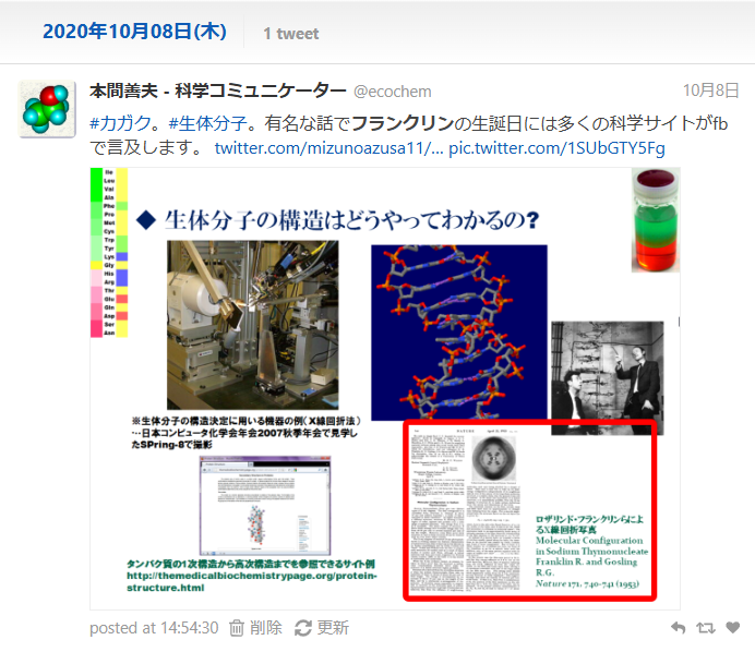 #カガク#生体分子。DNA。ロザリンド・フランクリン。化学同人メルマガより。 pic.x.com/TBlj5gkYVN