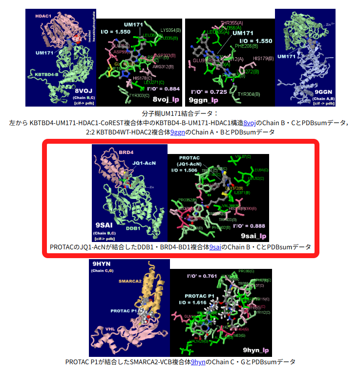 #カガク#生体分子#分子。PROTAC。LigPlot+による“鍵と鍵穴”。グラデーション。PROTACのJQ1-AcNが結合したDDB1・BRD4-BD1複合体PDB 9SAI(10/1公開,他に9SAFあり)のB・C鎖とPDBsumデータ。緑優勢。JmolトピックNo.791に追記。 ecosci.jp/chem13/topics1… pic.x.com/yjWof3KERa