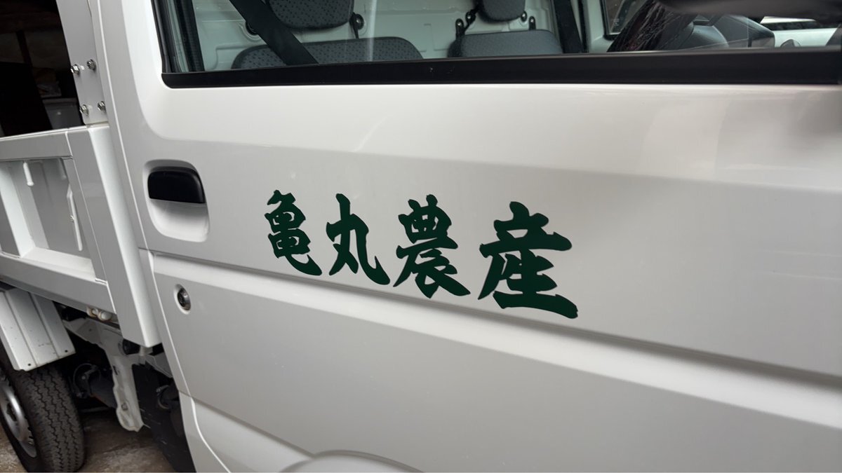 亀丸農産様の軽トラに社名ステッカー🚛 落ち着いた深緑の文字で上品な印象に🌿 #社名ステッカー #カッティングシート #Kirimozi #軽トラ pic.x.com/zPgkG9xplo