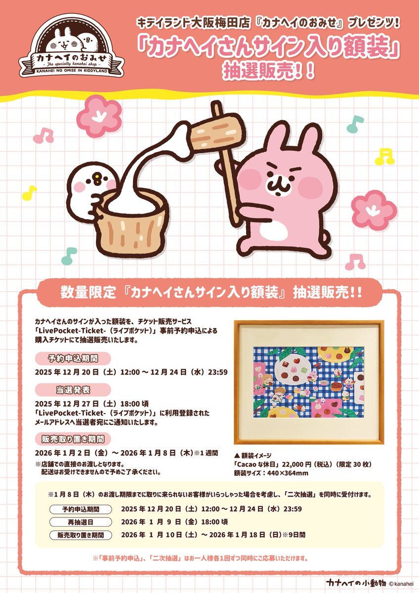 🍀 #カナヘイのおみせ 🍀 数量限定『カナヘイさんサイン入り額装』 抽選販売の詳細が決定✨ 予約申込期間:12月20日(土)12:00〜12月24日(水)23:59 当選発表:12月27日(土)18:00頃 お申込みはこちら⬇️ 一次抽選URL: livepocket.jp/e/46emw 二次抽選URL: livepocket.jp/e/xkxc_ #カナヘイの小動物 pic.x.com/luqxqkBdUw
