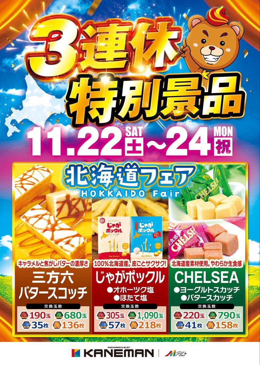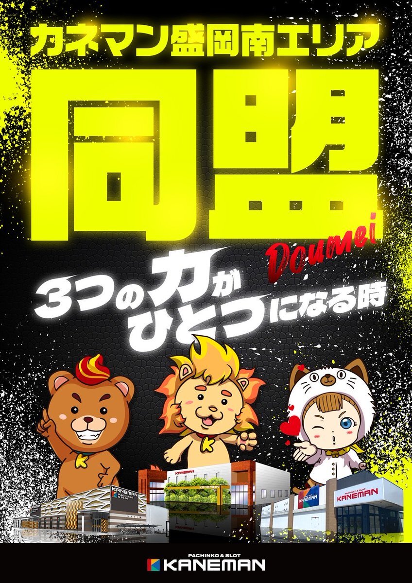 11月23日(日) でちゃう取材【金】 ✨3つの力を一つに✨ 🔥盛岡3店合同開催🔥 創業月間だからこそ出来る “本気の3店同盟”🦁🐻🐱 この勢い、見逃せない😎 全台朝9時フルオープン❣️ ご来店お待ちしております❣️ #カネマン #盛岡3店 #でちゃう取材 #創業月間 #3店同盟 #パチンコ #スロット pic.x.com/vKdG22MlaB
