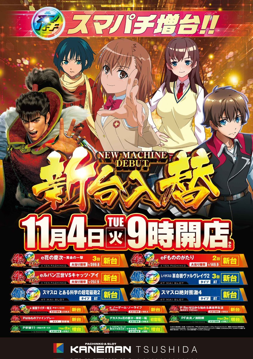 🌟明日11月11日(火)🎉 ✨11月はカネマン創業月間✨ 導入済🎰新台から人気機種まで勢揃い‼️ 💥楽しさ満点×快適空間📶Wi-Fi6完備💫 全台朝9時フルオープン⏰‼️ #カネマン津志田 #カネマン #創業月間 #新台 #人気機種 #WiFi6 #パチンコ #スロット pic.x.com/A0Hy3rLmPa
