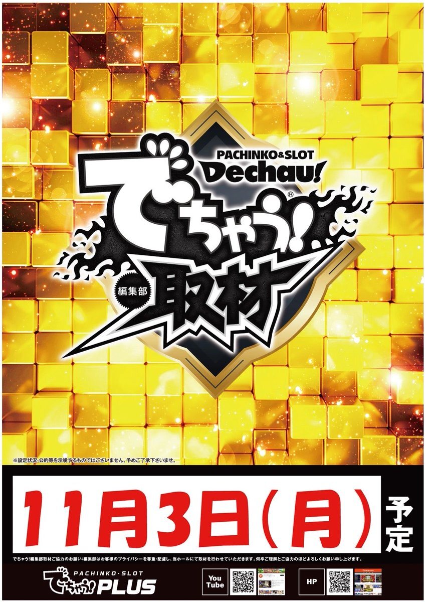 11月3日(祝)!でちゃう取材【金】! 盛岡3店合同開催🔥創業月間だからこそ出来る“本気の3店同盟”! この勢い、見逃せない‼️ 全台朝9時フルオープン!入場はオンライン抽選!津志田まんまパクリで掲載 #カネマン #盛岡3店 #でちゃう取材 #創業月間 #3店同盟 #パチンコ #スロット pic.x.com/lngstmF221