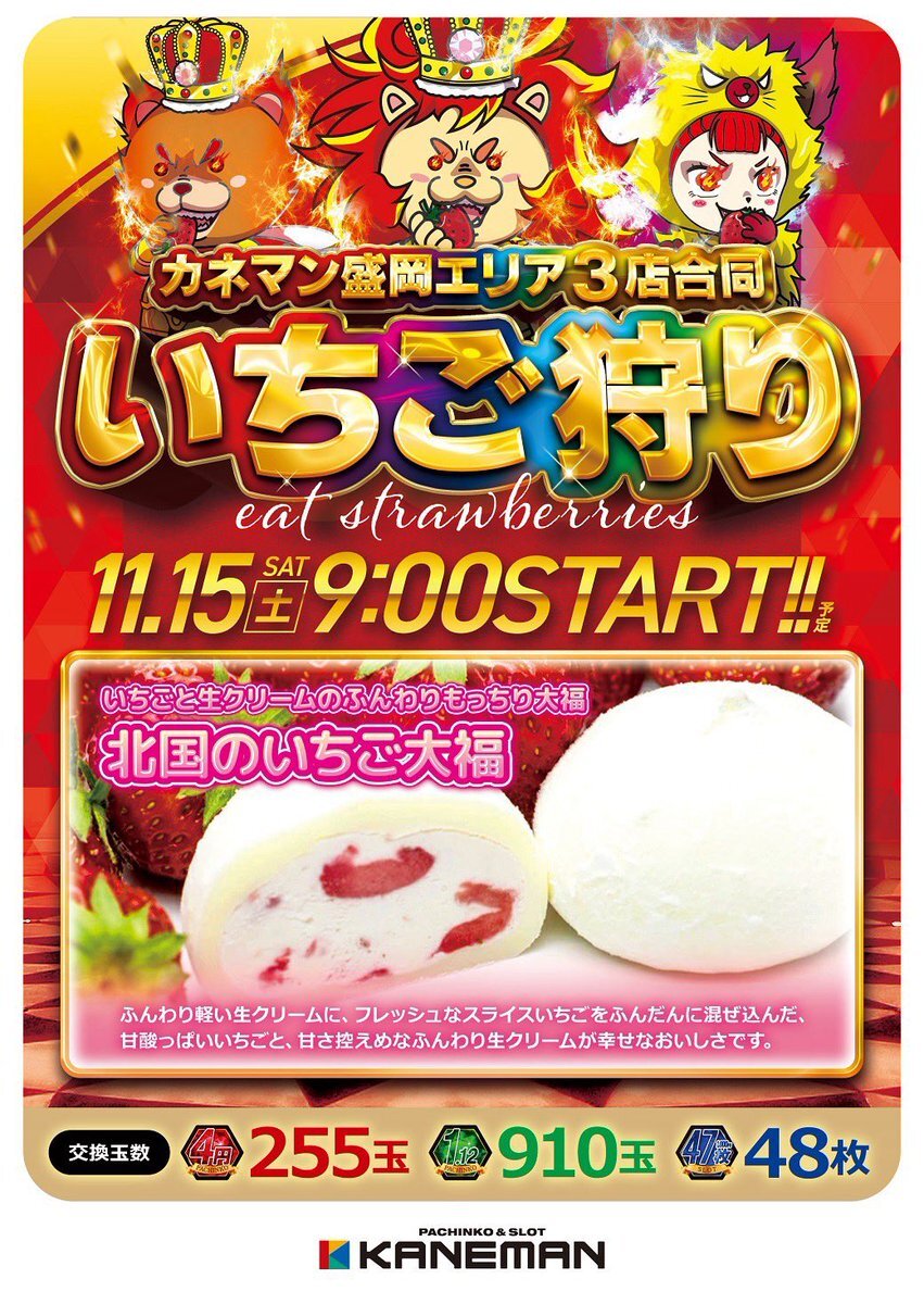 11月3日(祝)!でちゃう取材【金】! 盛岡3店合同開催🔥創業月間だからこそ出来る“本気の3店同盟”! この勢い、見逃せない‼️ 全台朝9時フルオープン!入場はオンライン抽選! #カネマン #盛岡3店 #でちゃう取材 #創業月間 #3店同盟 #パチンコ #スロット pic.x.com/XO5fsJCNku