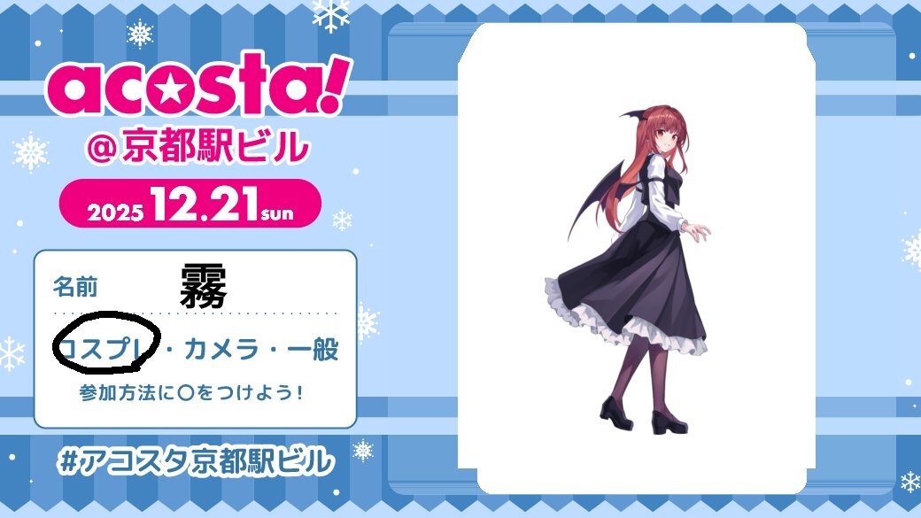 #アコスタ京都駅ビル 1週間前ですのでタグ出します! 今回は小悪魔で参戦します! 初めてのアコスタなのでよろしくお願いします 沢山交流したいです! #コスプレイヤーさんと繋りたい #カメラマンさんと繋がりたい #東方Projectコスプレ pic.x.com/yKVtq8Qljf