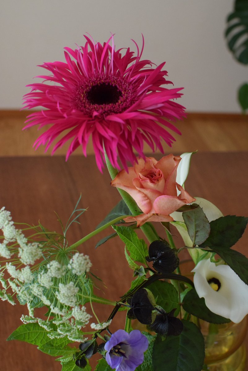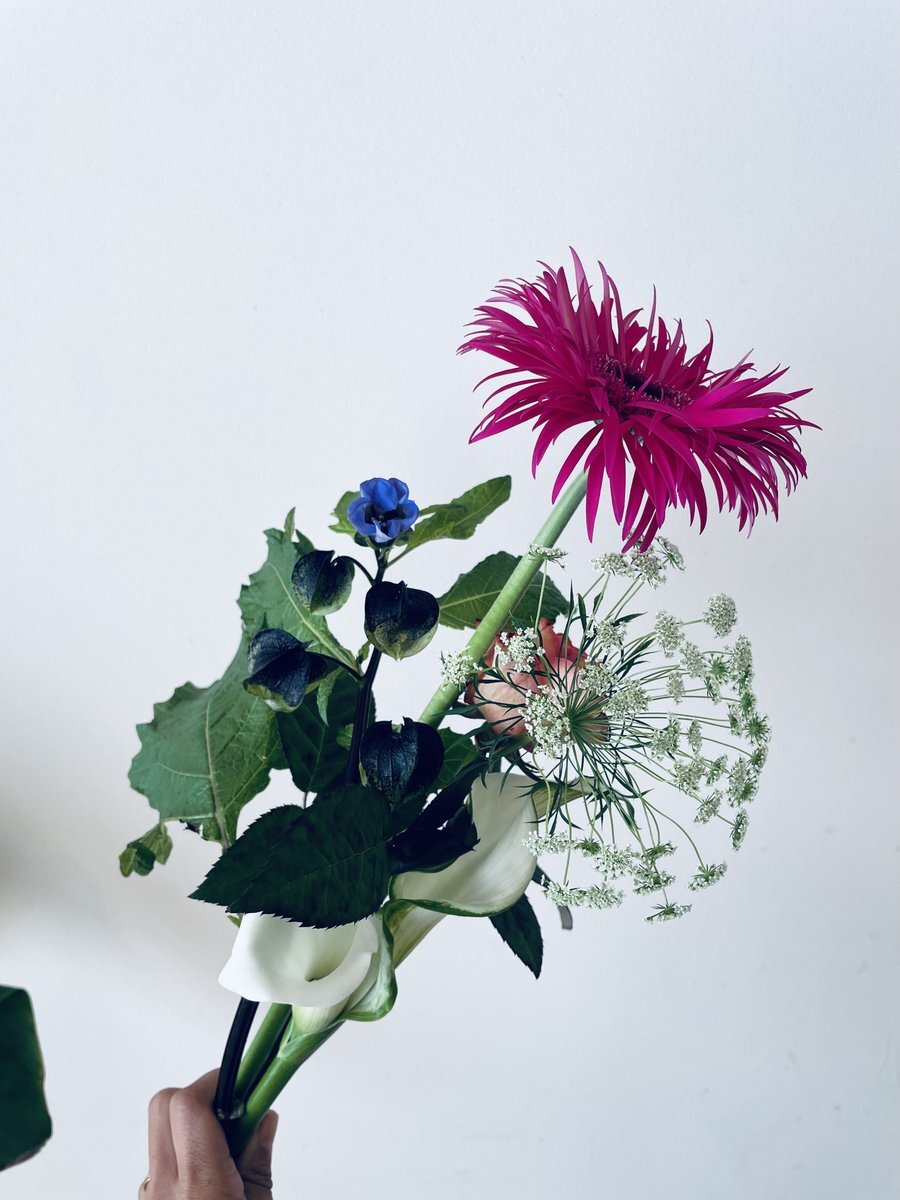 今朝の取材先のお花屋さんにつくってもらったミニブーケ。黒ほおずきがシックですてきでした。自分では手に取らなそうな大人の彩りが、新鮮でうれしい。 #カメラ練習中 pic.x.com/WKkhVvR3Sm