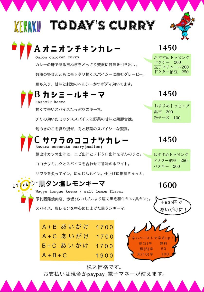 こんにちは、スパイスカレーケラクです! 今日から A【オニオンチキンカレー】が始まります! instagram.com/kerakuspicecur… #KERAKU #spicecurrykeraku #ケラク #スパイスカレーケラク #新メニュー #東京カレー #東京ランチ #カレー #カレー好きと繋がりたい #カレー部 #グルメ #目黒カレー #スパイス好き pic.x.com/41TvZB6s6d