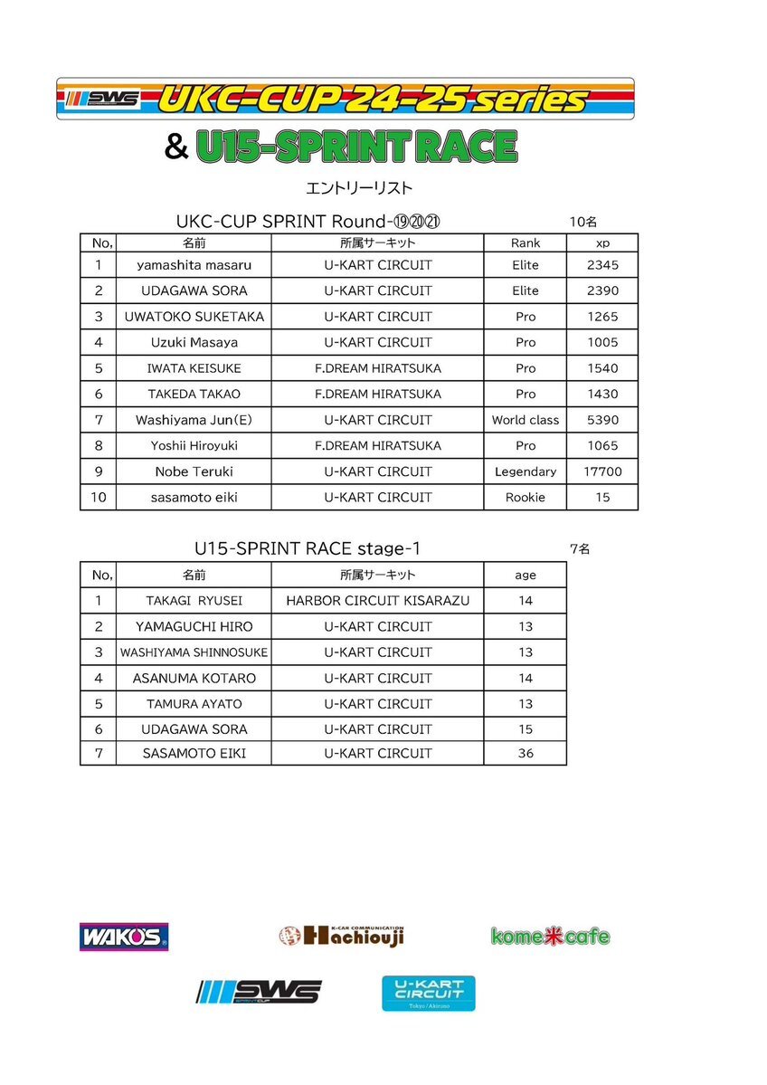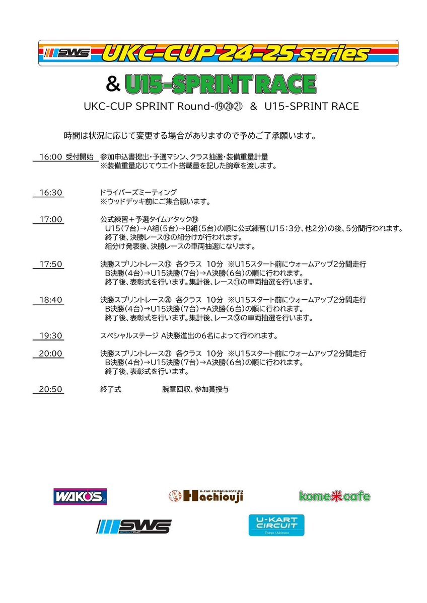 こんばんは😄 いよいよ明日はUKC-CUP SPRINT19-20-21戦 & U15-SPRINT 開催ですね🏎️💨 エントリーリストとタイムスケジュール発表になります📃 初開催のU15-SPRINTはどんなレースになるのか楽しみですね😊 SPRINTも最終戦ですので素晴らしいレースを期待しましょう🔥 #ゴーカート #カート #kart pic.x.com/XMXnli7mkO