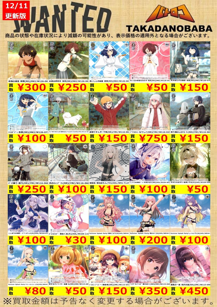 【#ヴァイス 買取情報】 🔥1⃣2⃣月1⃣1⃣日 更新🔥 ✨🐎バトロコ高田馬場🐎✨ ✨買取情報更新✨ 👰♀️👰♀️#五等分の花嫁👰♀️👰♀️👰♀️ #マケイン #ゆるキャン⛺️🎙#ホロライブ🎤#デレマス🎤 ☕️#ごちうさ☕️ #カードキャプターさくら #ぼっち・ざ・ろっく #アリスギア ヴァイス売るなら絶対 #ババロコ‼️ #WS pic.x.com/Kdi4JuKO1f