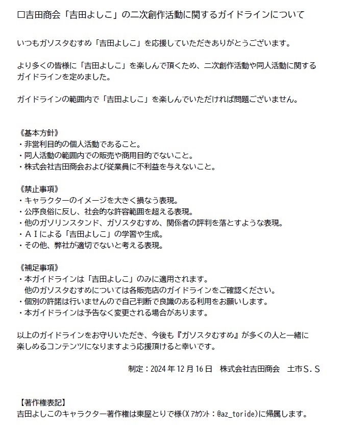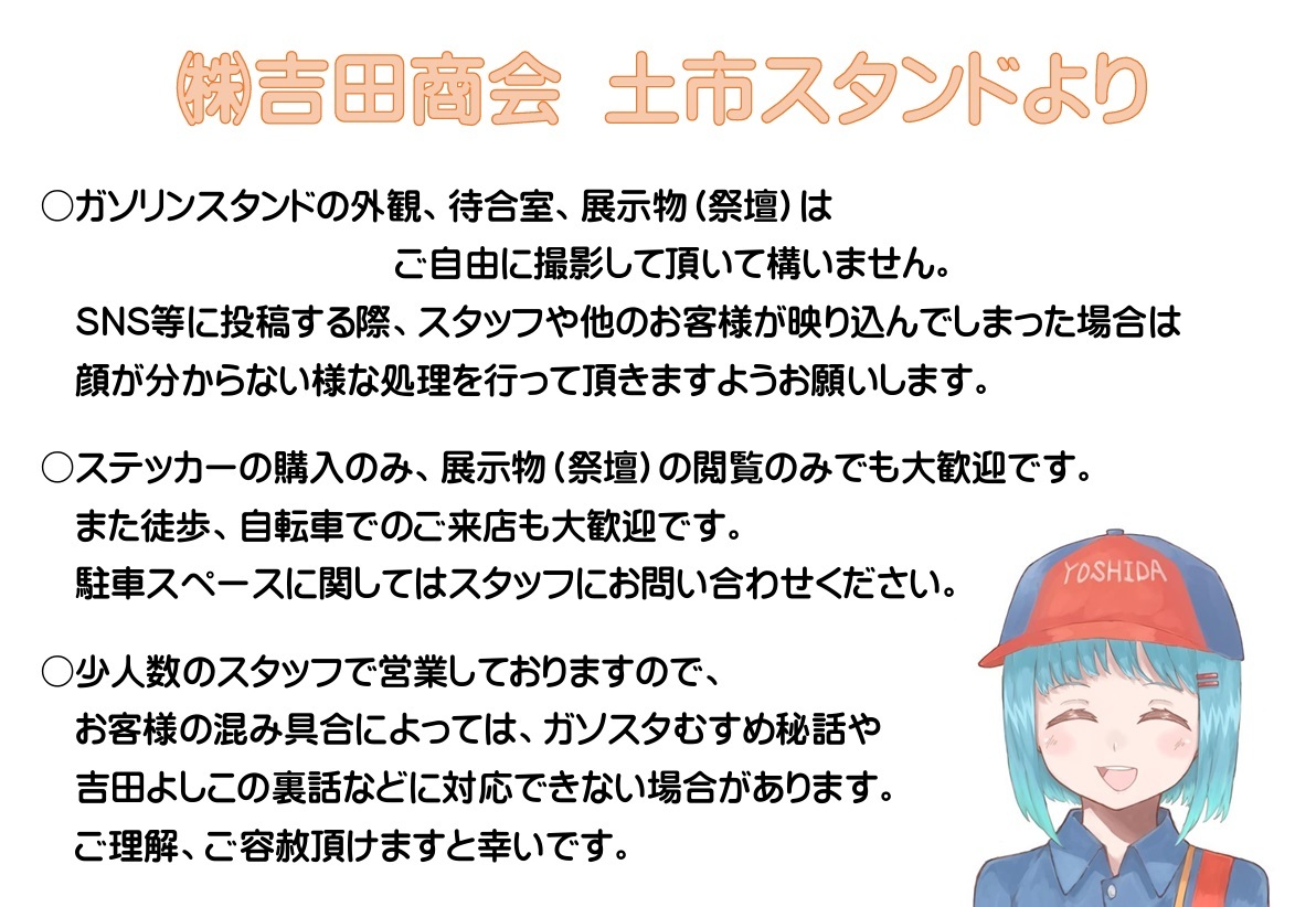㈱吉田商会 土市S.S.よりお願い(再掲) #ガソスタむすめ #ガイドライン #吉田よしこ pic.x.com/EapgOoGN50