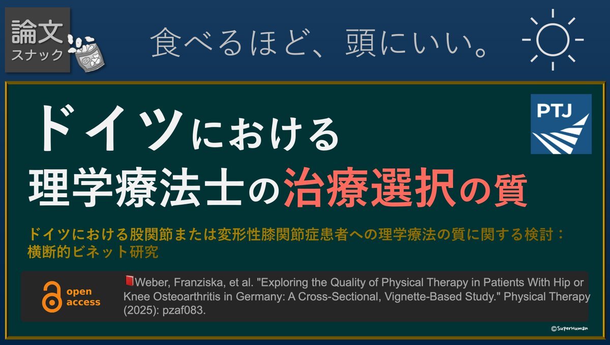 ・335名の理学療法士🇩🇪 ・変形性関節症の4つの模擬症例に対する治療選択を分析 🔹ガイドライン推奨治療法を全て選択したのはわずか22%だった 🔹構造化運動療法(96%)と関節炎教育(95%)が最も頻繁に選択された この研究を日本のPTで実施したらどうなるのか気になります😲 #変形性関節症 #ガイドライン pic.x.com/3oToVyacmo