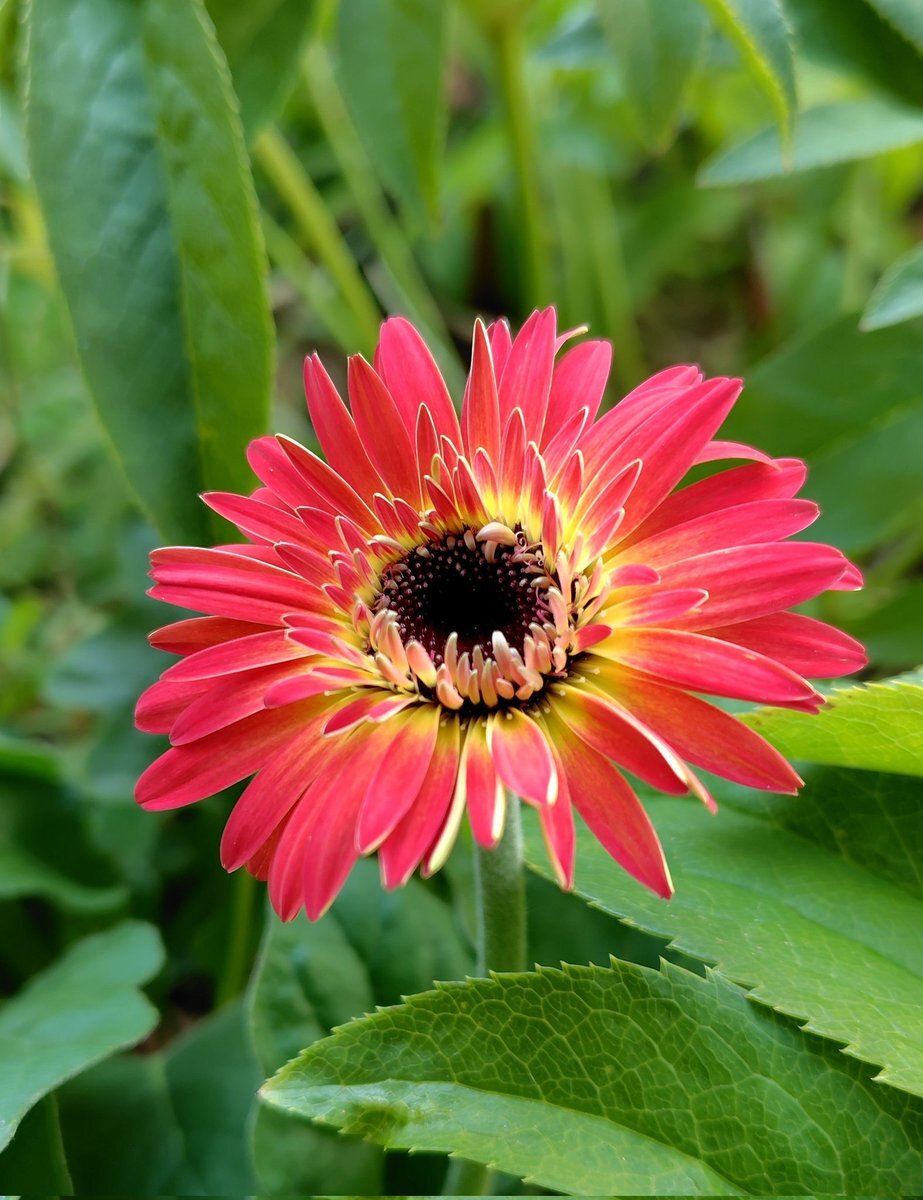 ❁*✨゜希望 *✨゜ハナコトバ*゜ クリスマスローズの葉に囲まれて ヒョッコリ 愛嬌よく咲いた ビタミンカラーの花 1輪あるだけで🧡*゜ お庭がパッと明るくなりました✨ Good morning*。⁠◕⁠‿⁠◕⁠。🌿 今日も優しい笑顔溢れる✨ よき週末を🍀ෆ #ガーベラ #TLを花で一杯にしよう pic.x.com/Q4CAfLUktz