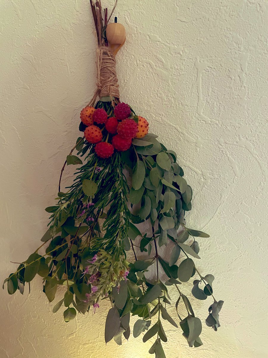 庭で生えてるローズマリー、ユーカリ、ヤマボウシの実でミニスワッグ✨…ヤマボウシ腐るかな😂 とりあえず様子をみよう 今日も元気なガーベラたち☺️ #ドライフラワー # #ガーベラ pic.x.com/3EorIMpHcM