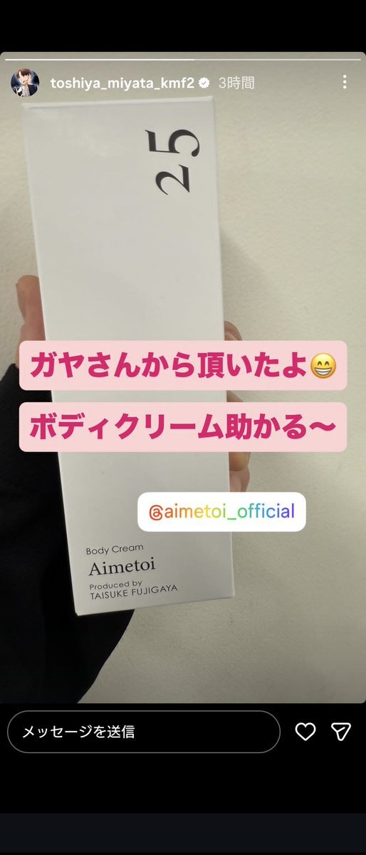 宮田くんは、藤ヶ谷くんから Aimetoiをプレゼントしてもらったみたい☺️🩷💜 #みやスタグラム #KisMyFt2 #キスマイ #宮田俊哉 instagram.com/stories/toshiy… pic.x.com/ohWIy7yEJD x.com/___Taipeachxxx…