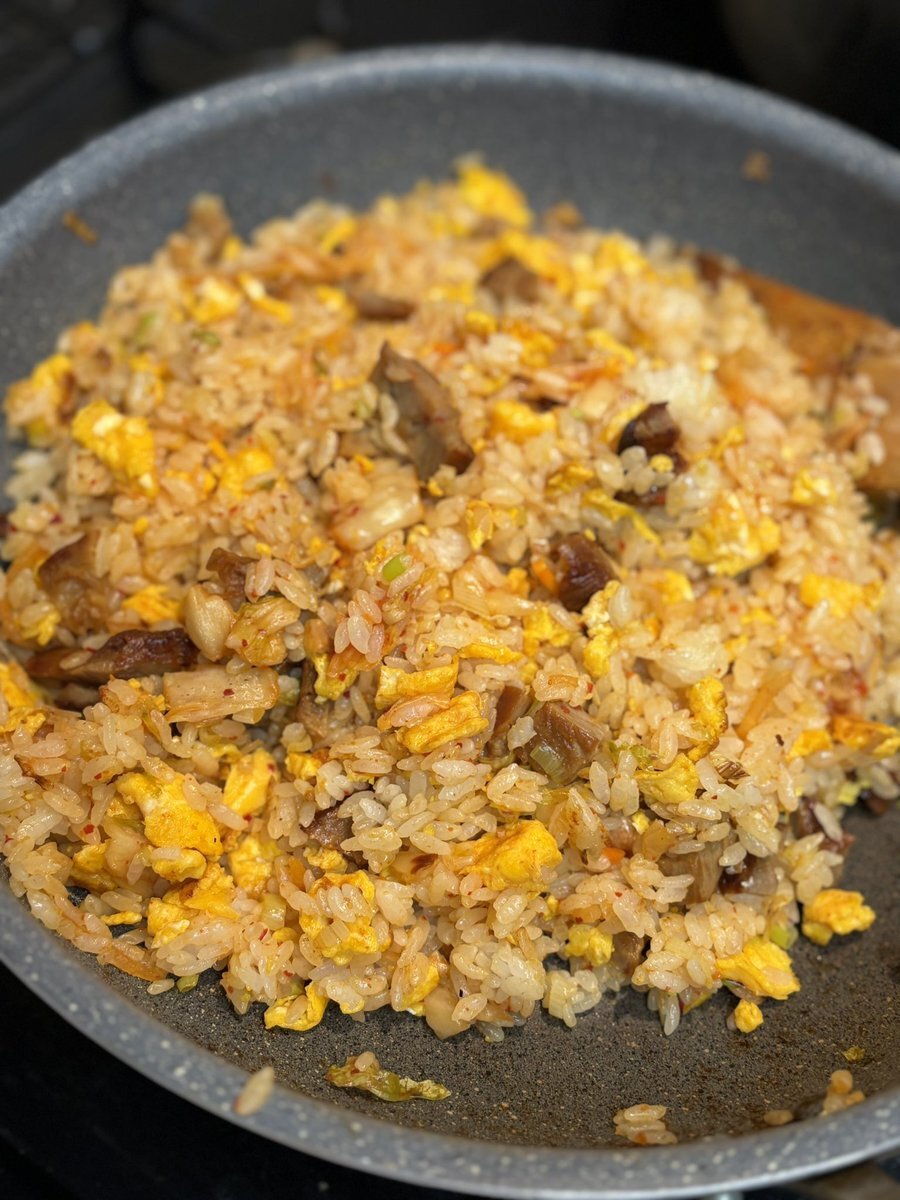 本日はキムチ納豆炒飯😆最後にジャコ山椒とラー油、のりを垂らして完成🎈ごま油は少量なので、油ギトギトにならずスッと入ってくる炒飯に仕上がりました♪ #おうちごはん #自炊記録 #お昼ごはん #キムチ炒飯 pic.x.com/6XWV2gmdjb