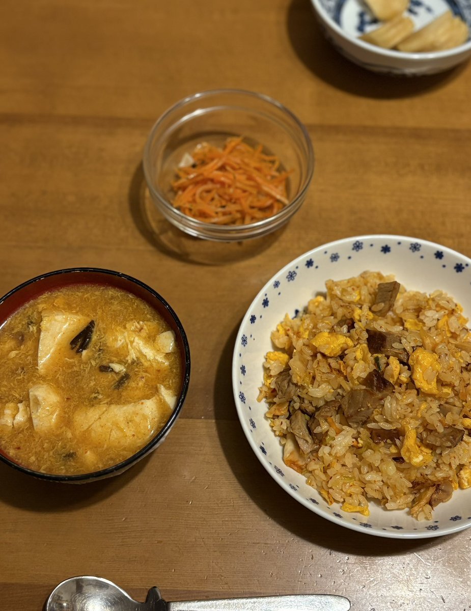#おうちごはん𓎩𓌉𓇋 世界陸上から目が離せず 炒めるタイミングが ーーーww 我が家の夕飯🍽️ オーダー率75% 本日は酸辣湯スープ付き 旨旨デス🤤🙏✨ #キムチ炒飯 pic.x.com/M5RBaoWyg5