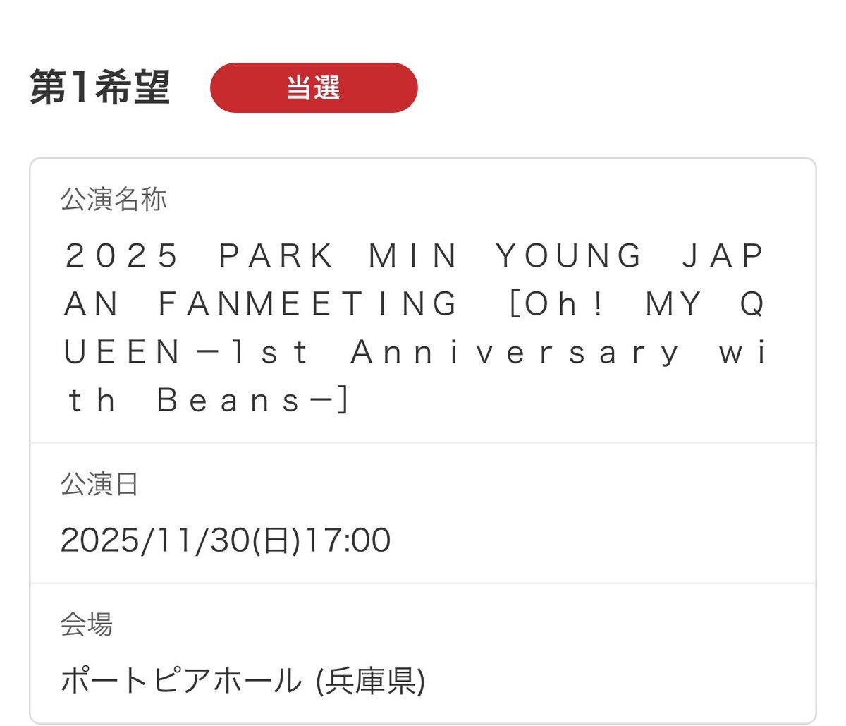 👑2025 #PARKMINYOUNG JAPAN FANMEETING👑 【🎟️プレイガイド1次先行】受付開始✨ 🗓️申込期間 2025年10月29日(水)23:59まで✅ 💗公演後にお見送り会も💗 #パク・ミニョン #パクミニョン #박민영 #コンフィデンスマンKR #私の夫と結婚して #キム秘書はいったいなぜ 👇詳細👇 park-minyoung.jp/notice/4841 pic.x.com/OtTcsFxiFR