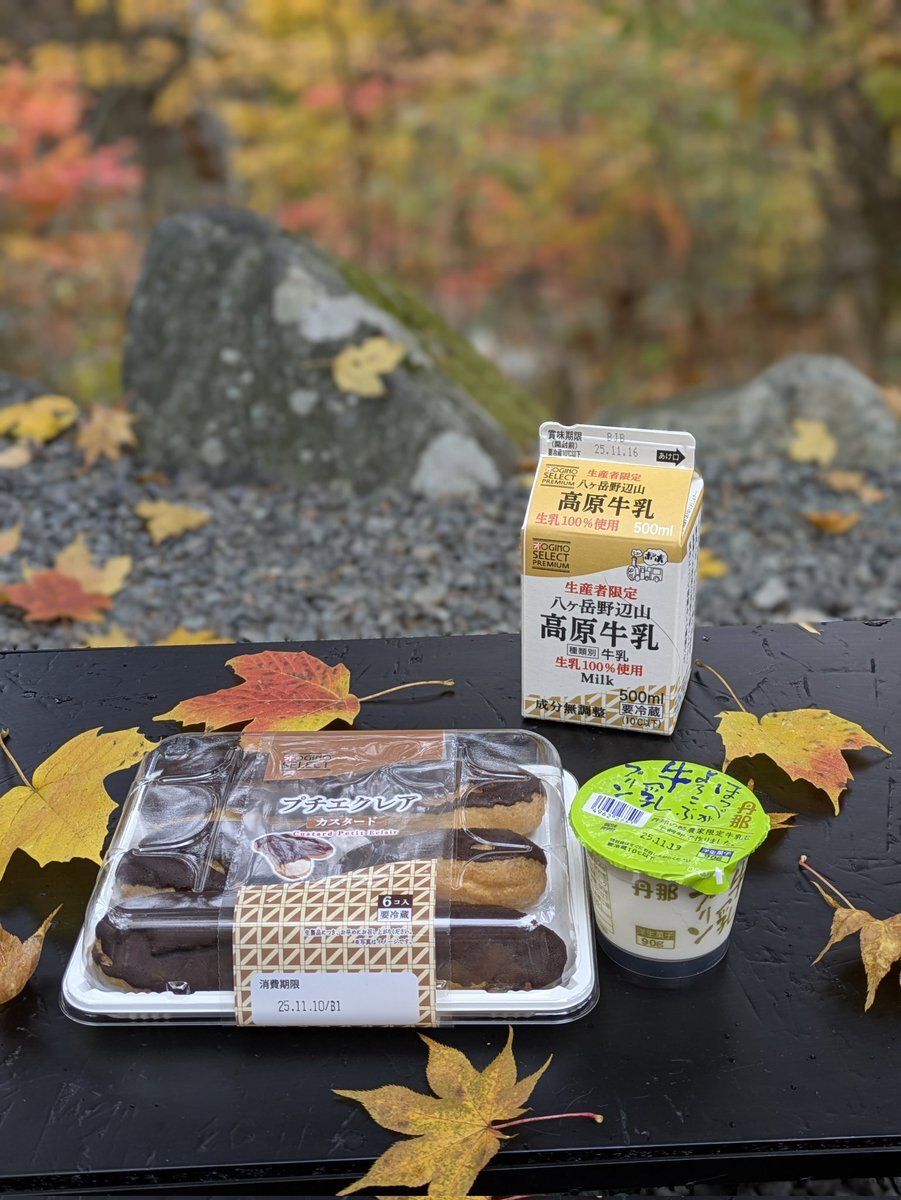 雨強くなる前に、丹那プリン食べて、ぼちぼち撤収しますか😋 丹那牛乳1リットルしか売ってなかったから、山梨で買った八ヶ岳牛乳🥛 #丹那牛乳プリン #丹那酪農 #シメのデザート #キャンプのお供 pic.x.com/xTI2q69dzI