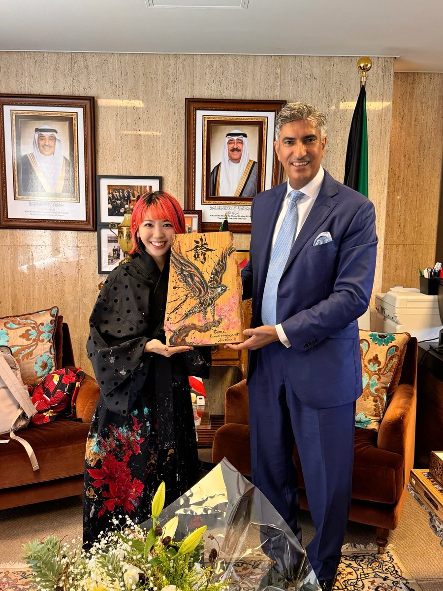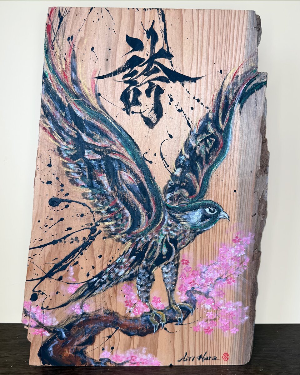 クウェート大使に贈った作品🇰🇼 屋久杉に書かせていただきました。 国のシンボルであるファルコンに 日本語、アラビア語、英語で "希望"の文字を書きました🌸 #書道 #書道アート #クウェート #原愛梨 pic.x.com/DxbfQbtouA x.com/ainooooto/stat…