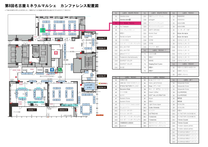 #名古屋ミネラルマルシェ 配置図です! カンファレンスルームの果ての果て、ボードルームC3にてお待ちしています!前回と同じ場所になります! #クォーツ 拡充しました!マニカラン産の大きいものです!500g以上!!あと #マインクラフト 好きに受けるような石もご用意!現在配送中!! pic.x.com/Y2kICKCGcn