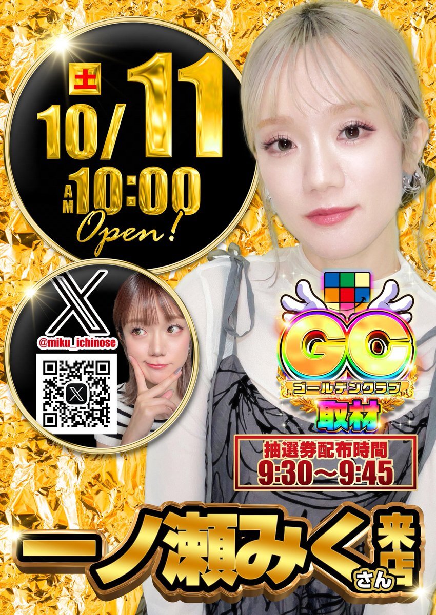 こんにちは #クラブハウス宮田支店 です😀 明日10月11日(土)は #クラブハウス #全店合同  朝10時開店です 明日は #一ノ瀬みく さんも 朝から来店してくれます❤️ 抽選参加券は9時30分から配布しております 今月は #創業月間㊗️ となっております 皆様のご来店お待ちいたしております🤩 pic.x.com/tGxgdqeGQY
