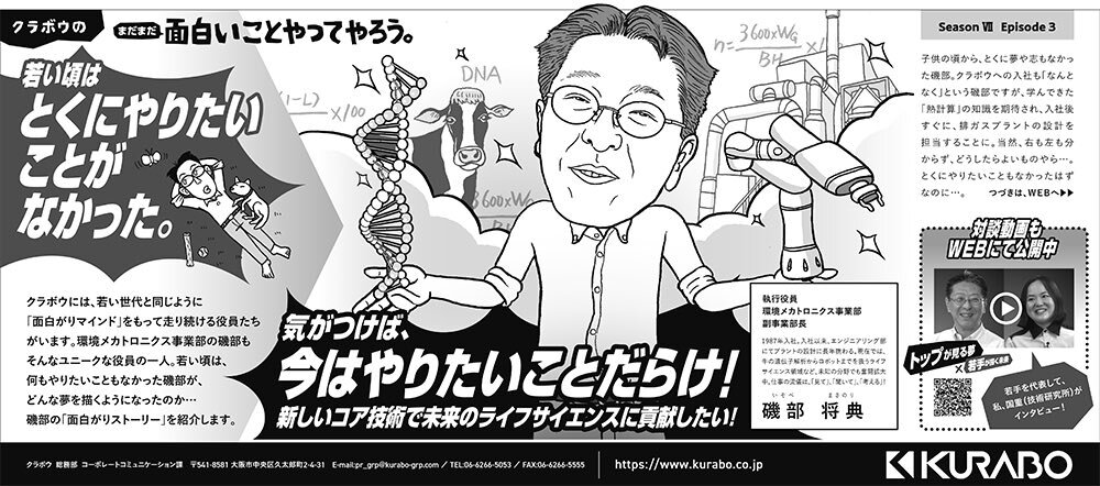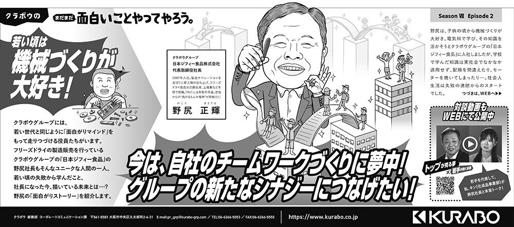 クラボウ広告「まだまだ面白いことやってやろう。」シーズン7エピソード4日本経済新聞5段掲載誌いただきました!#クラボウ #面白いことやってやろう #日本経済新聞掲載 #ほししんいち pic.x.com/fWCZnj0XwY