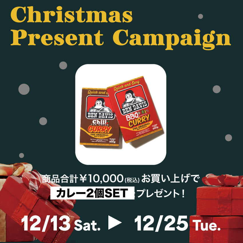 Christmas present campaign🎄 期間限定!12/13〜12/25 ¥10,000以上のお買い上げでカレー2個セットプレゼント🎁 store.bendavisjp.com #プレゼント #ギフト #クリスマス pic.x.com/7j8enZYCqD