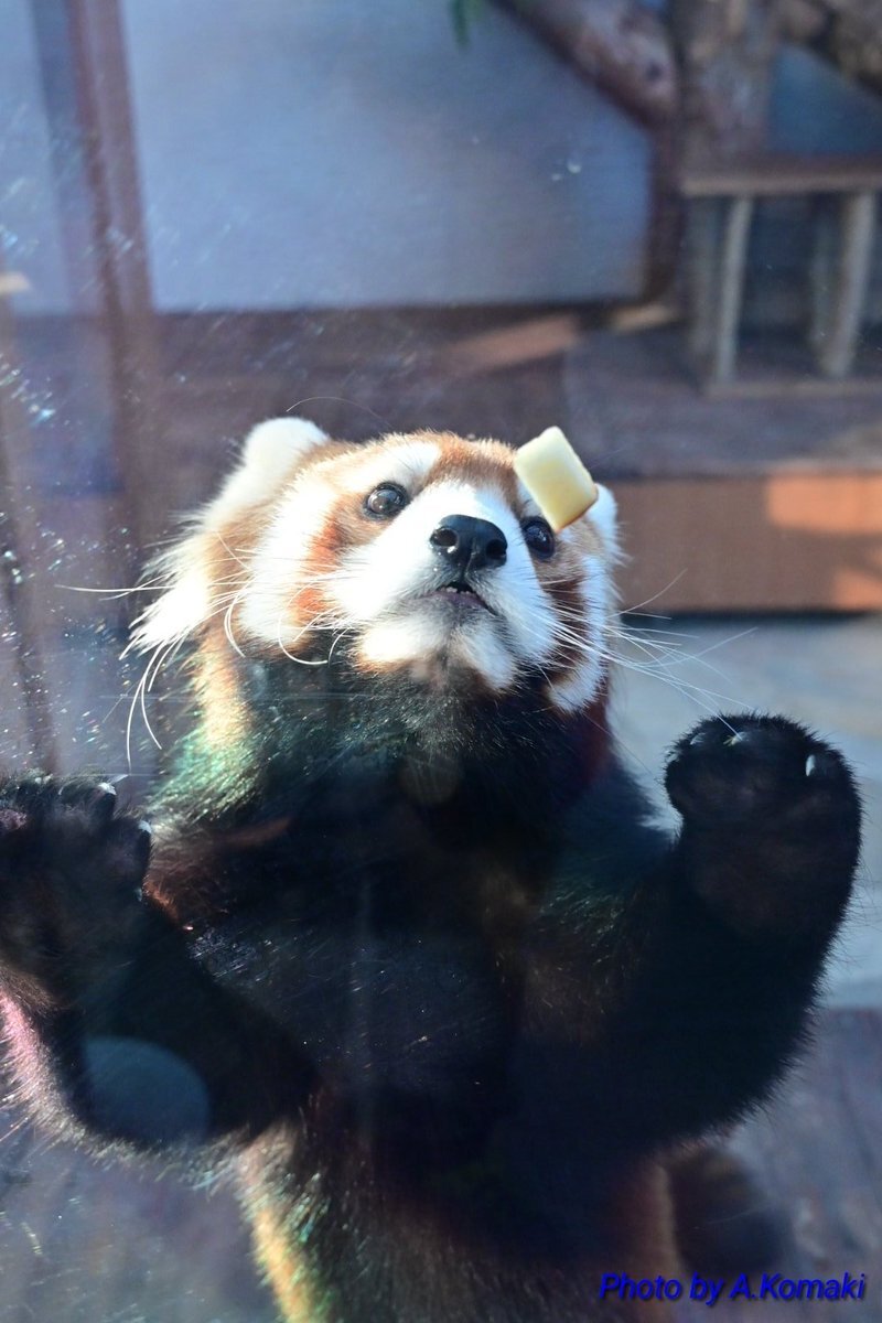 先日のクルミさん部屋🍎 室内のおりんごタイム見るのは何気に初めて まさかの2枚取り😳 #八木山動物公園 #レッサーパンダ #クルミ pic.x.com/YQx8A92oHv