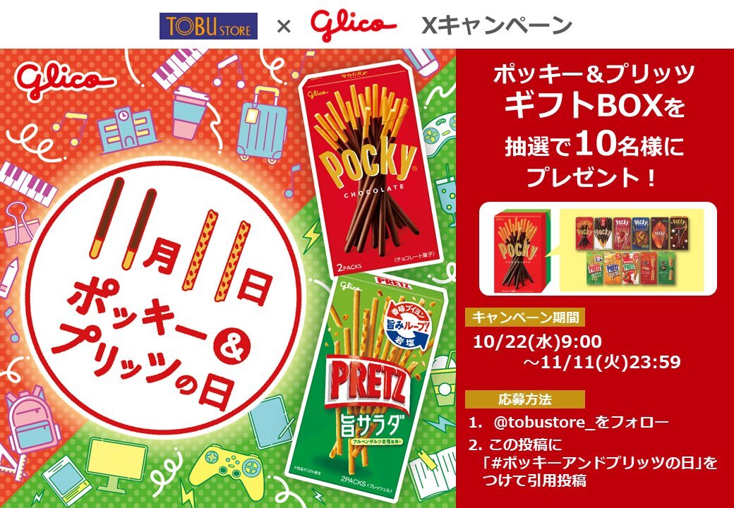 ㊗#東武ストア × #グリコ Xキャンペーン!🎉 #ポッキーアンドプリッツの日 x.com/tobustore_/sta…