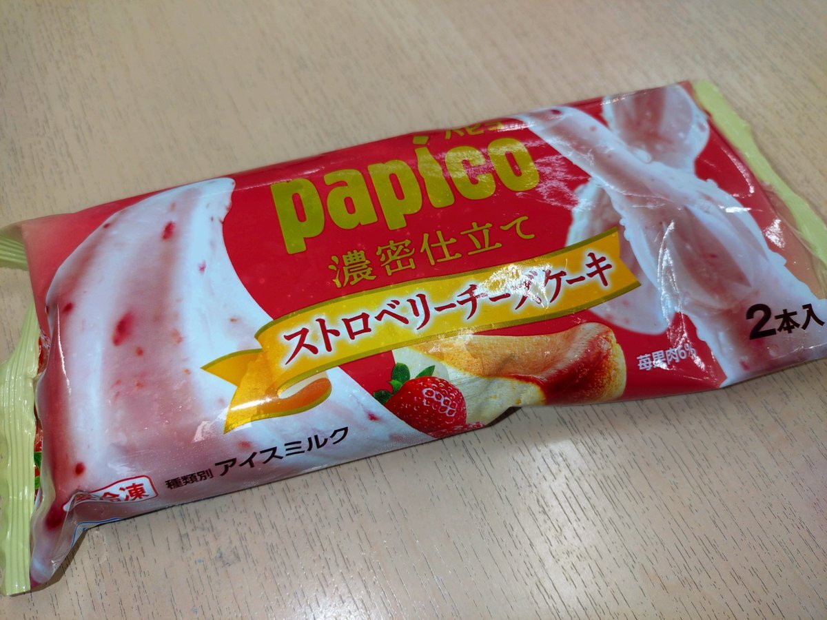 本日のアイス(♡>艸<) これめっちゃ美味い❀(*´▽`*)❀ いちごなんね🍓✨ #もっちの楽しみ #パピコ #ストロベリーチーズケーキ #濃密仕立て #グリコ pic.x.com/6XAjXnJ0f6