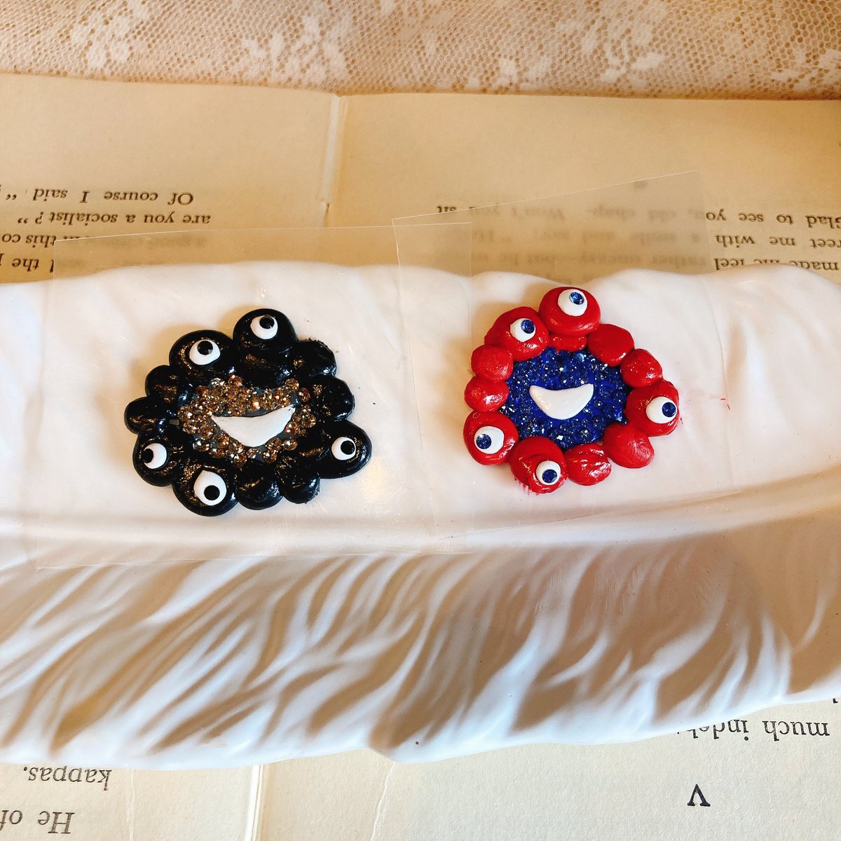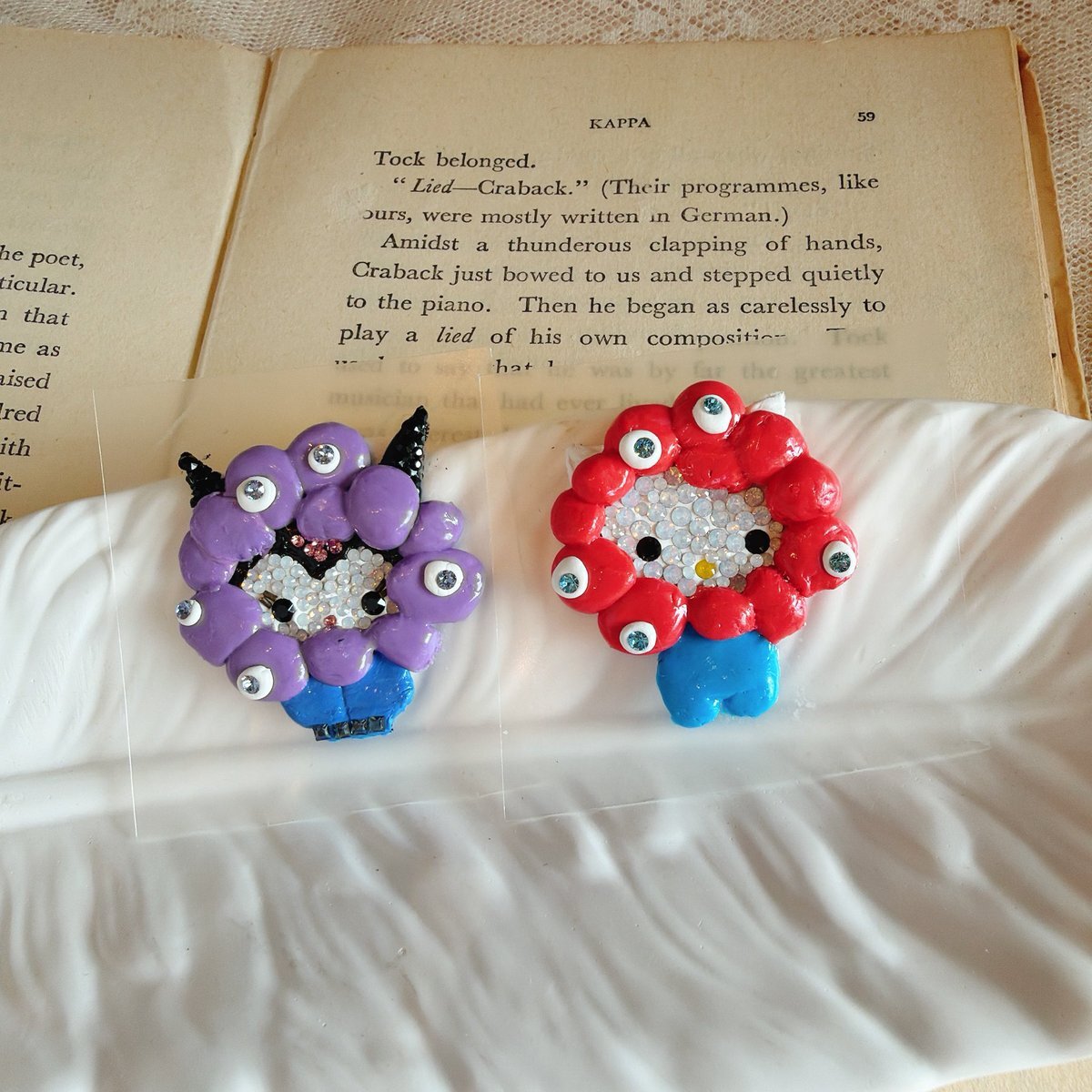 久々にグルーを触ったらめちゃくちゃ神経を使ってブローチ1個作っただけで疲れ果てた😅しかし、これで終わりではない。明日の今頃から裏にマグネットを貼り、またしばらくしてから裏や細かいとこにレジンで強化。時間はかかりますが可愛い仕上がりに✨️ #グルーデコ pic.x.com/k5wTEa6CZR