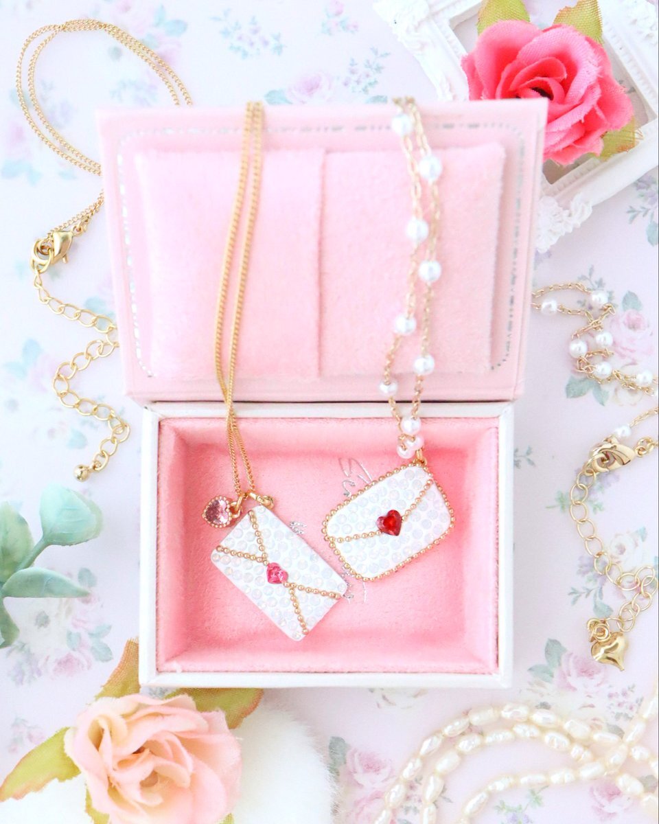 ラブレターのネックレスをリクエストいただきました💌✨ 少し丸みのある右側はパールチェーン、 シャープな左側はシンプルチェーンで仕上げてます♪ Eye Candyさまにてお取扱中🧸🍬 #ハンドメイドアクセサリー #グルーデコ pic.x.com/hlzFVybPDY