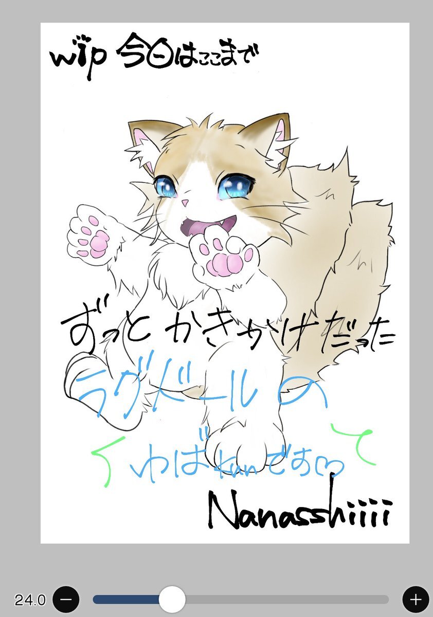 描きかけを描きかけで今日はおしまいデス 『青い目の長毛種』なのでラグドールにしたらしっくりきた感じかも 名前を『ゆば』にしました、おとこのこです♂ 明日描きあげます!✨✨🐈 #wip #猫 #猫又 #ケモノ #絵描きさんと繋がりたい #ケモナーさんと繋がりたい pic.x.com/aDxgpZA5zN