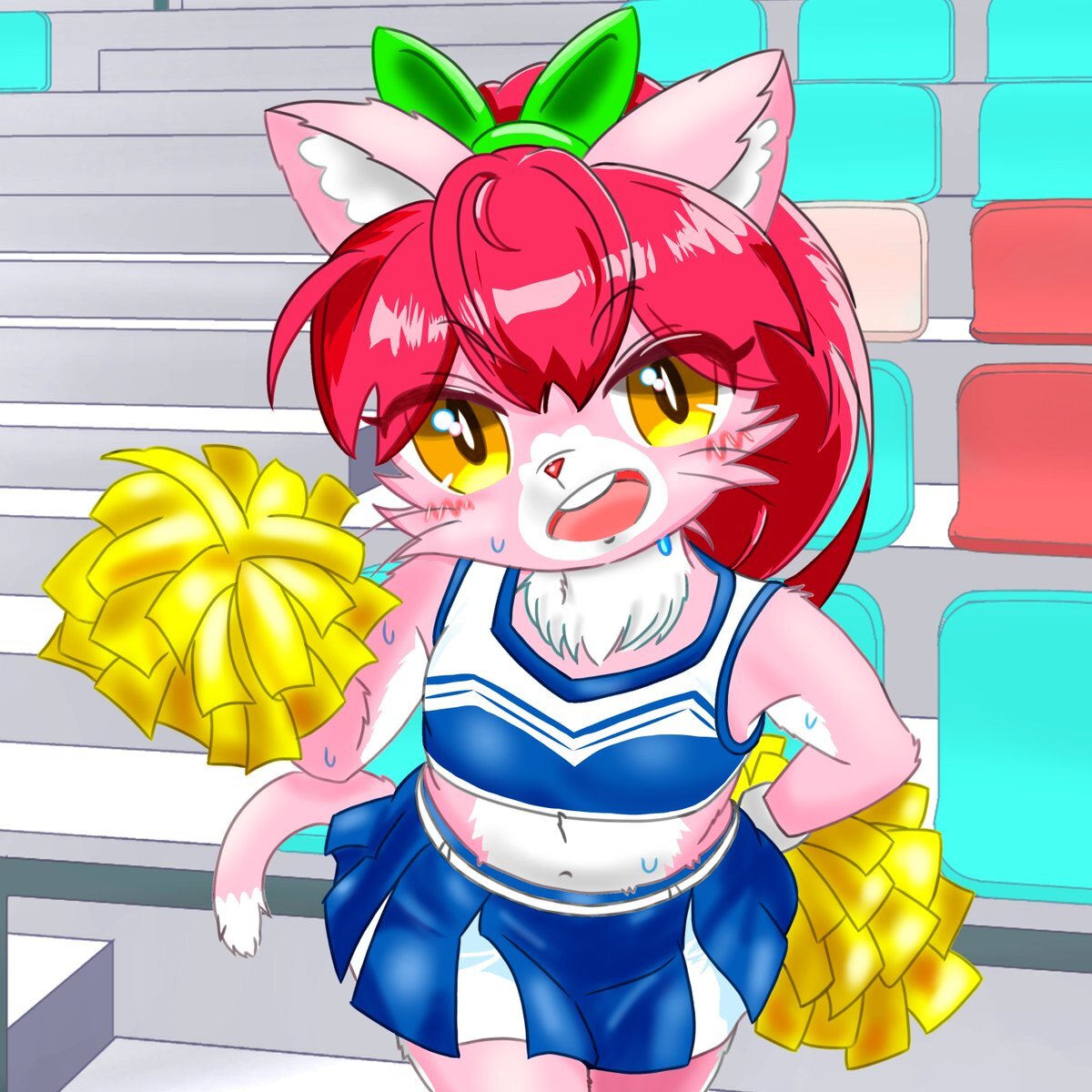 #ケモノ #メスケモ #furry x.com/sajitarius666/… 完成しました😊 ウチの子 #モケモ島フレンズ のモモちゃんです🤗 運動、スポーツが大好きな猫ちゃん 今回はチアリーダーで友達を応援中かな?