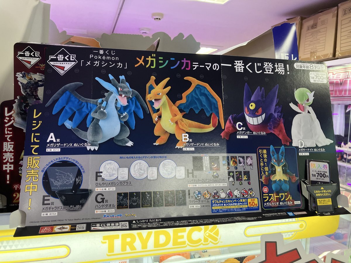 ✨一番くじ✨ ・Pokemon 『メガシンカ』 新ロットを展開致しました‼️ たくさんのご来店お待ちしております🔥 #らぶふらっと下通店 #ゲームセンター #一番くじ #ポケモン #ポケットモンスター pic.x.com/Tut01VBKXL