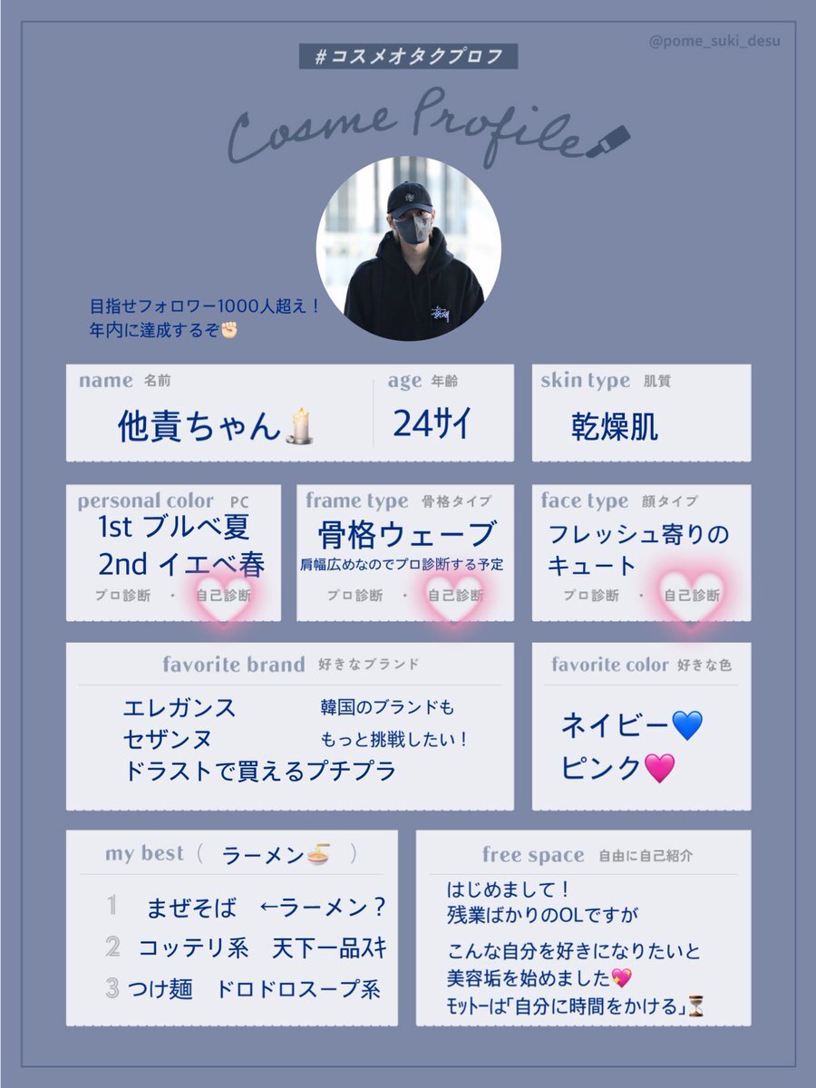 こういうの憧れてはいたんだけど 正直めんどくさくて作ってなかった! フォロワー200人達成したので記念に やっと作ってみました〜💖 むんぱわ5期生です🌙 💙or🔁でフォローしにいきます! 気軽に絡んで下さい! #コスメオタクプロフ #美容垢さんと繋がりたい #拡散希望