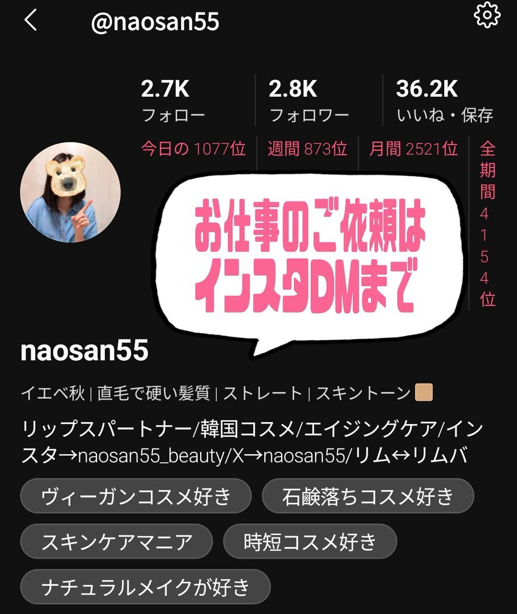 お仕事のご依頼はお気軽にインスタDMまで🥰📩💕 (偽アカ注意⚠️) \最近の人気投稿💕/ instagram.com/p/DQlKn65Emut/… ↑105万閲覧、300保存✨️ \楽天ROOMやってます/ room.rakuten.co.jp/room_naosan55/… #スキンケア好きさんと繋がりたい #美容垢さんと繋がりたい #エイジングケア #楽天ルーム #美容垢 x.com/naosan55/statu…