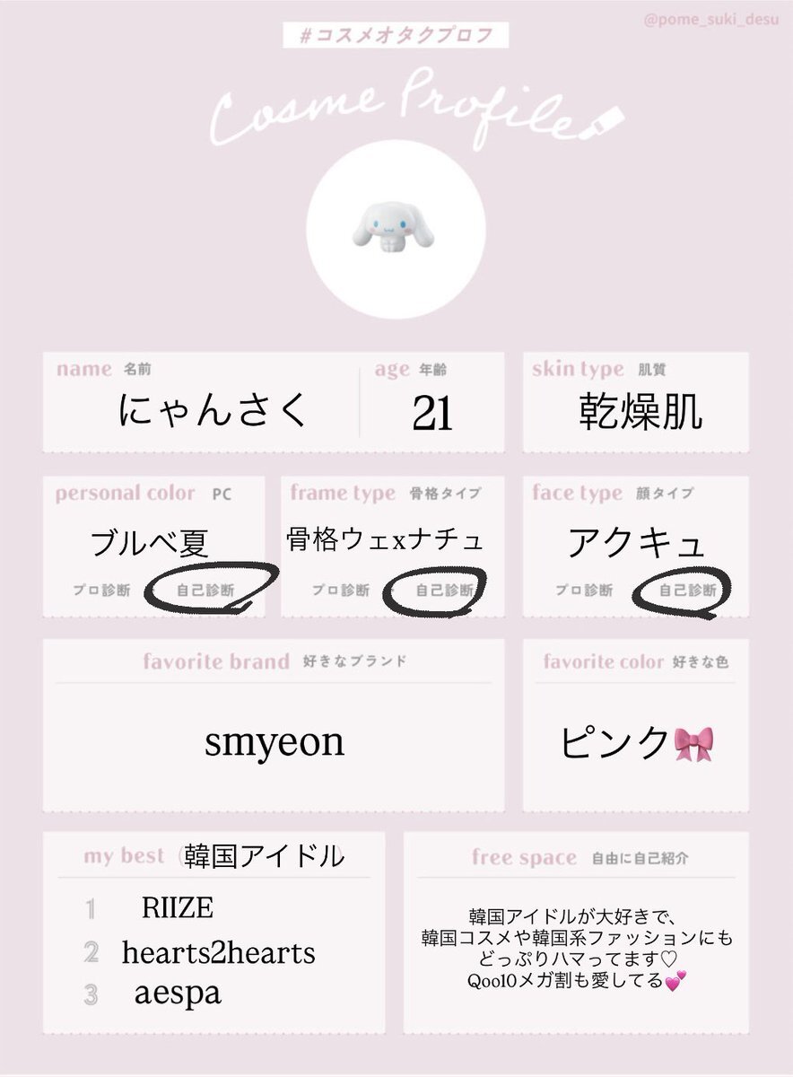 美容垢はじめました🎀 韓国コスメ・スキンケア・ファッション ♡ or ↻でお迎えいきます( * ॑꒳ ॑*) たくさんの方と繋がりたいです🤍 テンプレお借りしました🙇‍♀️ #美容垢さんと繋がりたい #コスメ垢さんと繋がりたい #コスメオタクプロフ