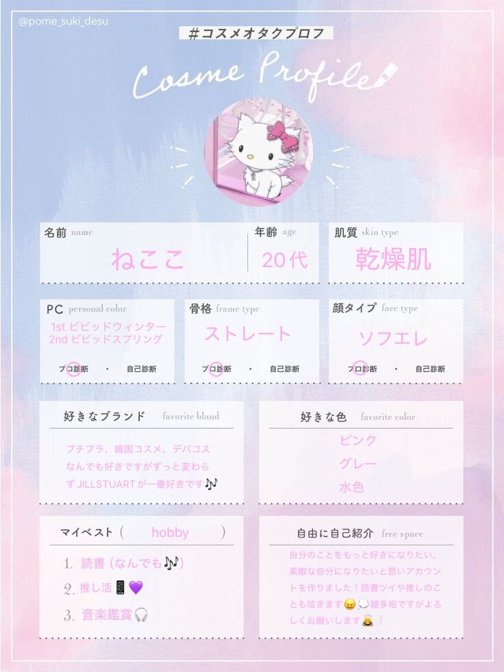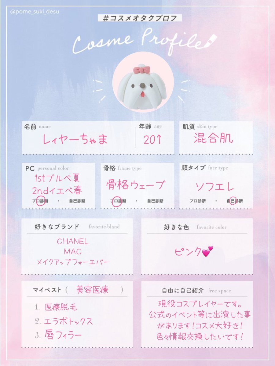 🏷 テンプレお借りします🤍 元美容カウンセラー、現役コスプレイヤーが美容垢作りました🪽 ↺or♡で気になった方お迎え行きます✨ #コスメオタプロフ #コスメオタクプロフ #美容好きさんと繋がりたい #美容垢さんと繋がりたい #コスメ好きさんと繋がりたい #コスメ垢さんと繋がりたい