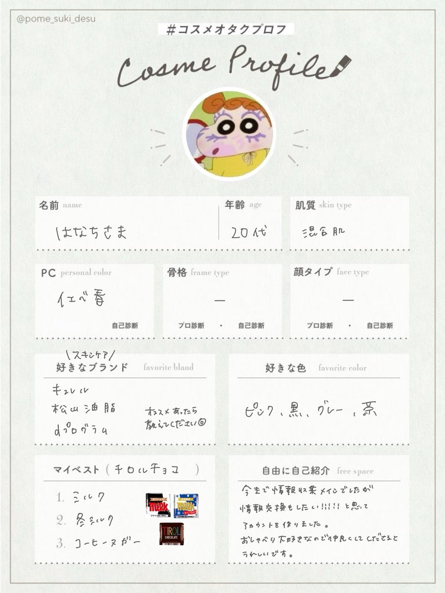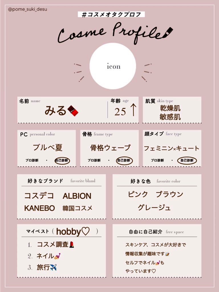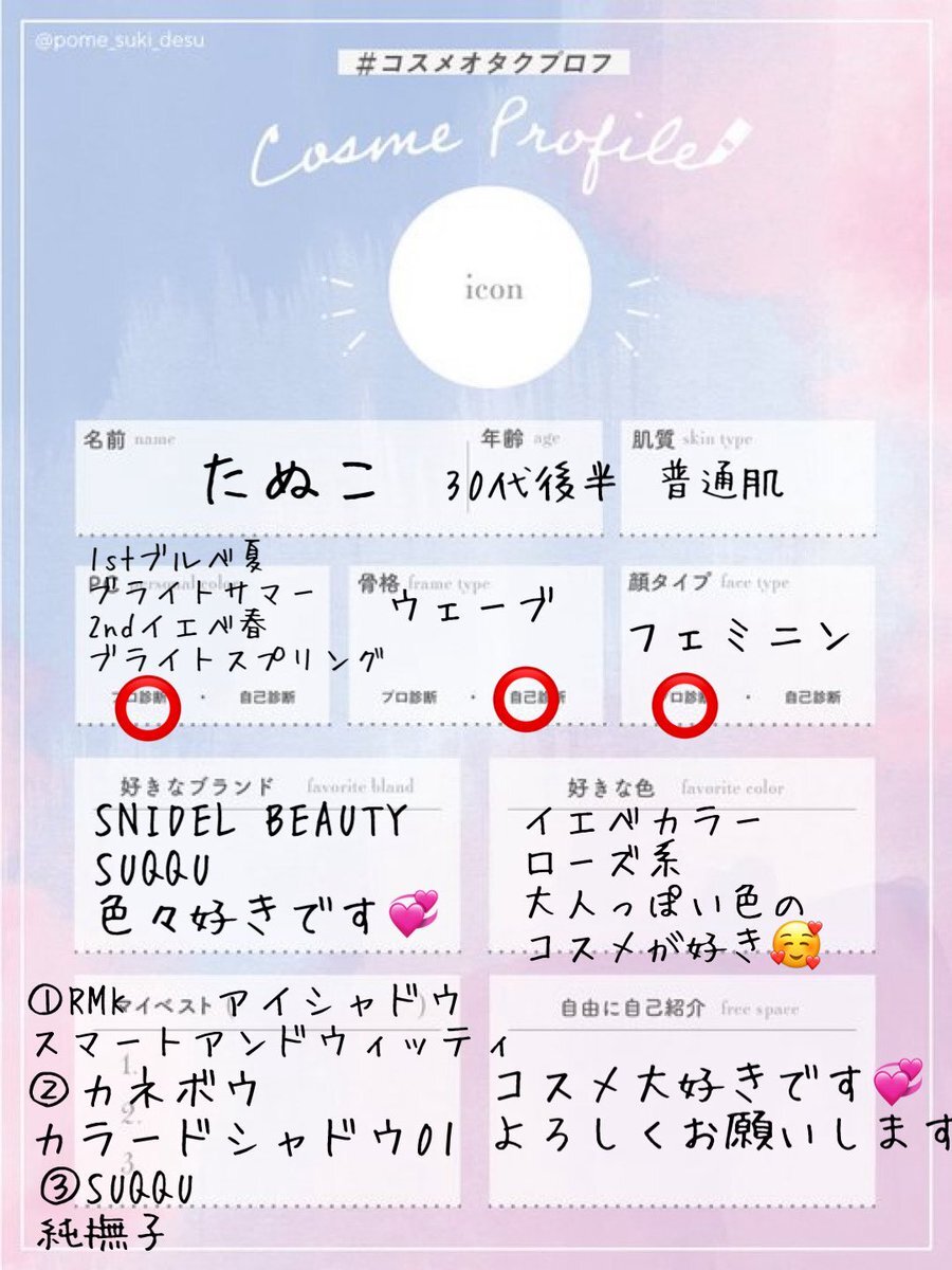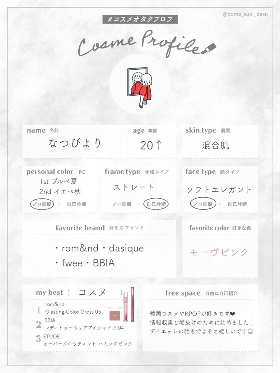 検索載らなかったので再掲です🥹 テンプレお借りしました! たくさんの方と繋がれると嬉しいので、♡or↺でフォローにてお迎え行きます! #美容垢さんと繋がりたい #コスメ好きさんと繋がりたい #コスメオタクプロフ #美容垢 x.com/biyorin_0/stat…