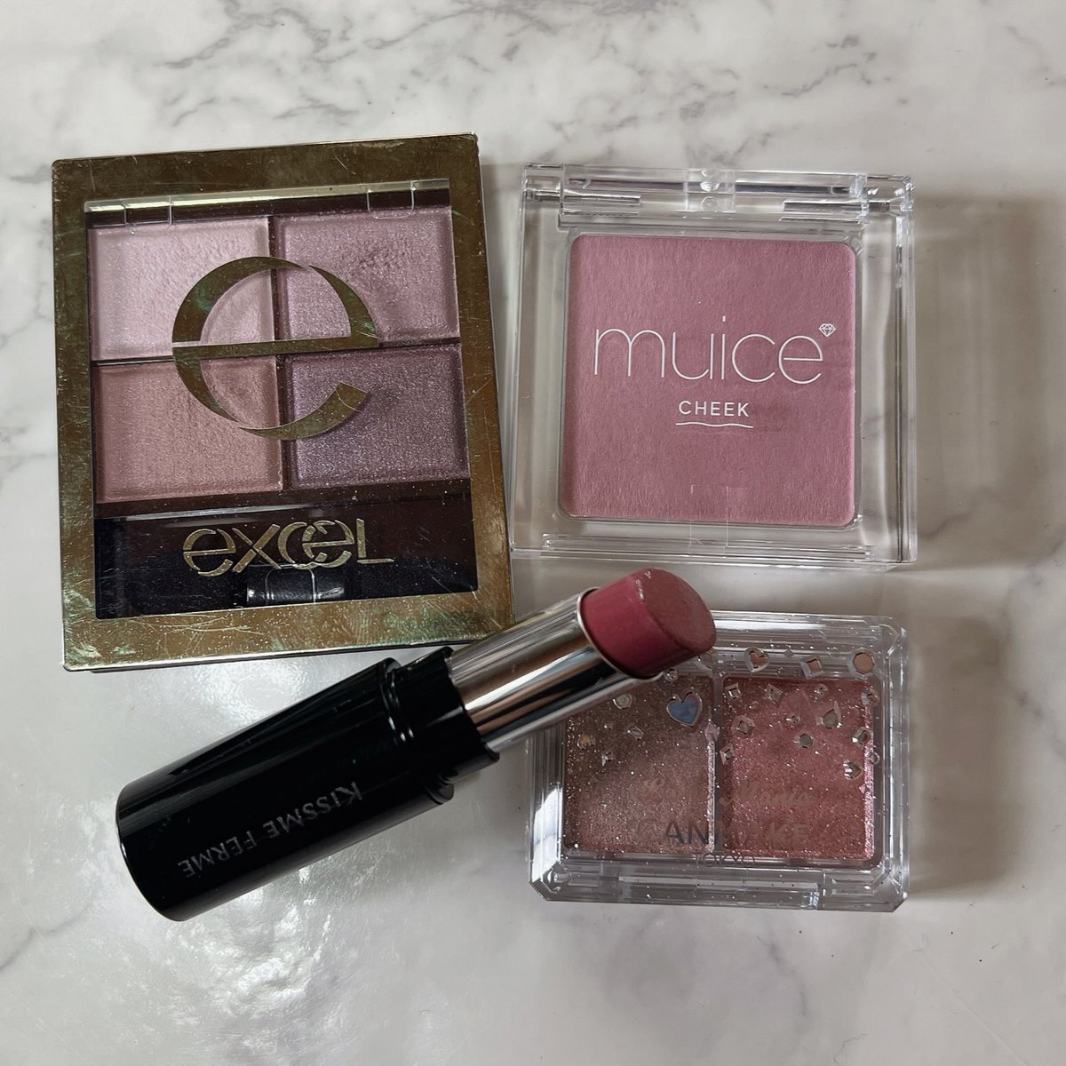 #今日のメイク ☑︎excel @excelmake_tokyo スキニーリッチシャドウ SR14 ☑︎CANMAKE @CanmakeTokyo ラメマニア 02 ☑︎muice @muice__official ぽわんチーク SP02 ☑︎キスミーフェルム @KISSME_PR ミセイロルージュ 50 #コスメ好きさんと繋がりたい #コスメ垢さんと繋がりたい pic.x.com/kWKX9WT6Uz