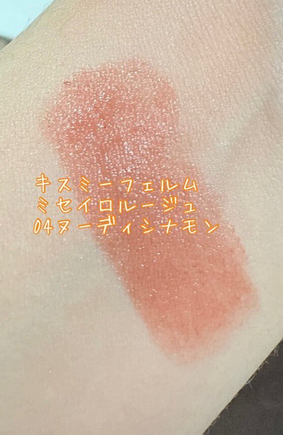 ミセイロルージュの04ヌーディシナモンはこんな色💄 荒れない、縦皺目立たない、うるうるになるし色んなメイクに合わせやすいから大好き❣꒰∩´◡`∩꒱🍃 まだまだあるけどリピ予定 #おすすめコスメ #コスメ好きさんと繋がりたい pic.x.com/Bcxi2eAG8T