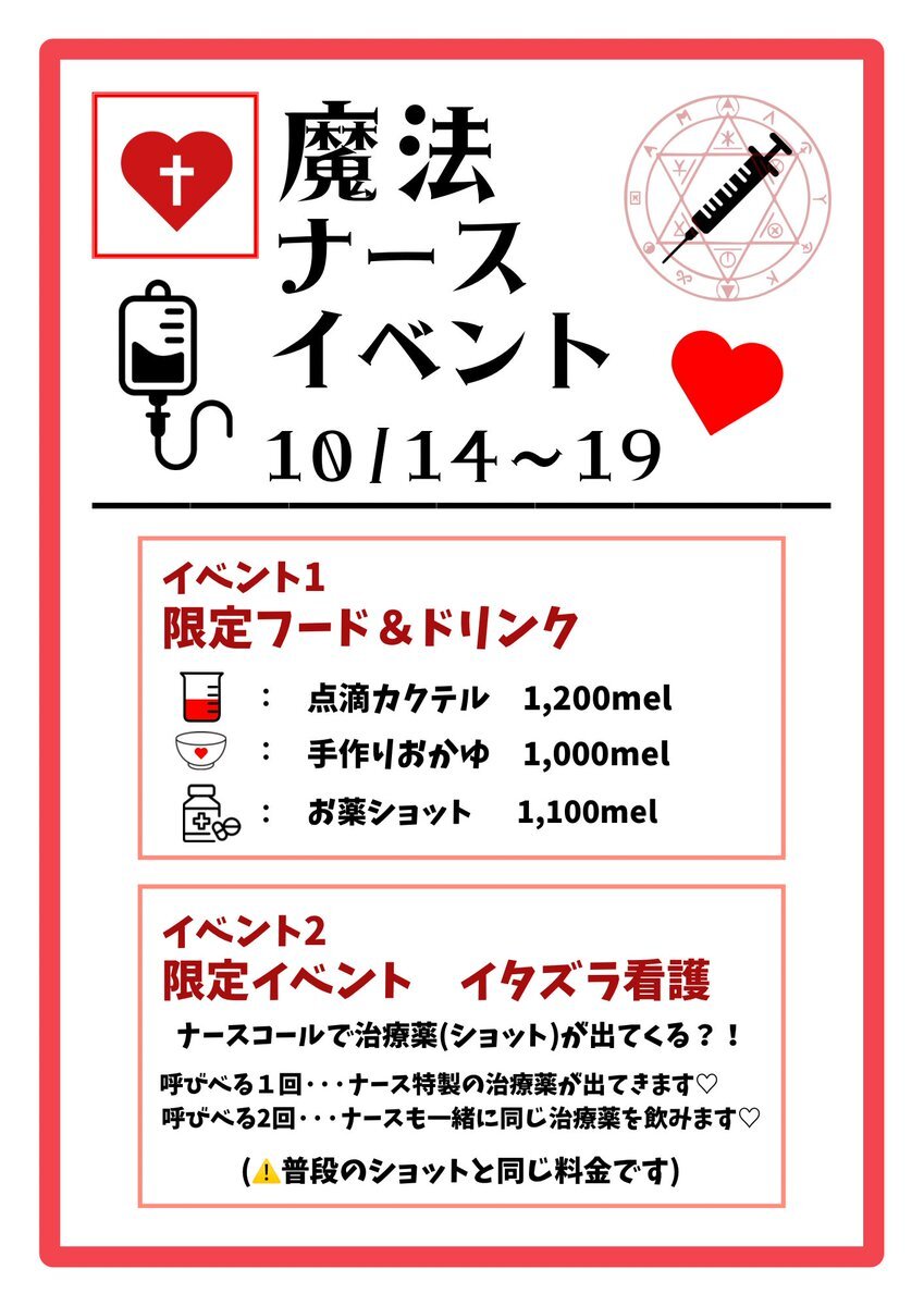 🏫10/17(金)出勤情報🏫 💉ナースイベント🩺 🧙‍♀️まる 18~23 @melmel_maru 🧙‍♀️あうる18~23 @owl_aulu_ 🧙‍♀️あおい 18.5~23 @melmel_aoi 🧙‍♀️こはく 18.5~23 @melmel_kohaku ご来館お待ちしております。 #新橋コンカフェ #メイドカフェ #コンセプトカフェ #ガルバ pic.x.com/K4k9SiCA5T