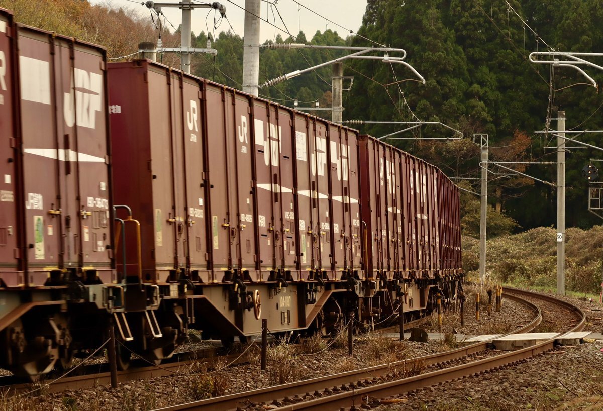 府中本町駅を通過する74レEF66-27 他の撮り鉄とは違う撮り方で撮影📸 2021年11月12日金曜日午後16時26分 #武蔵野線 #府中本町駅 #EF6627 #ニーナ #コンテナ車 #コンテナ #電気機関車 pic.x.com/xQiypOI60R