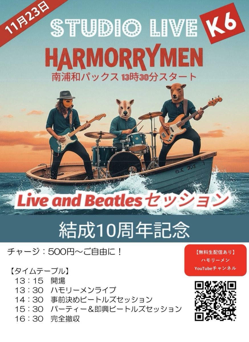 あと3日!どなたもお気軽に! ☆ハモリーメンのライブ! ★ビートルズセッション! ☆会場限定ハモメンコーヒー豆も準備中! 🎥 無料生配信あり 写真のQRコードからチャンネル登録をお願いします! #ハモリーメン #10周年 #ビートルズセッション #コーヒー豆 #生配信 pic.x.com/jtjPBoXpiO