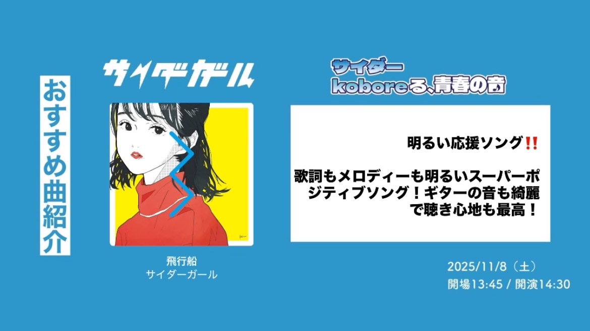 【#市大祭おすすめ曲紹介】 「飛行船」/サイダーガール(@cidergirl_info) #サイダーガール #見放題 #市大祭 #市大祭ライブ #名古屋市立大学) pic.x.com/trqbhp1rU7